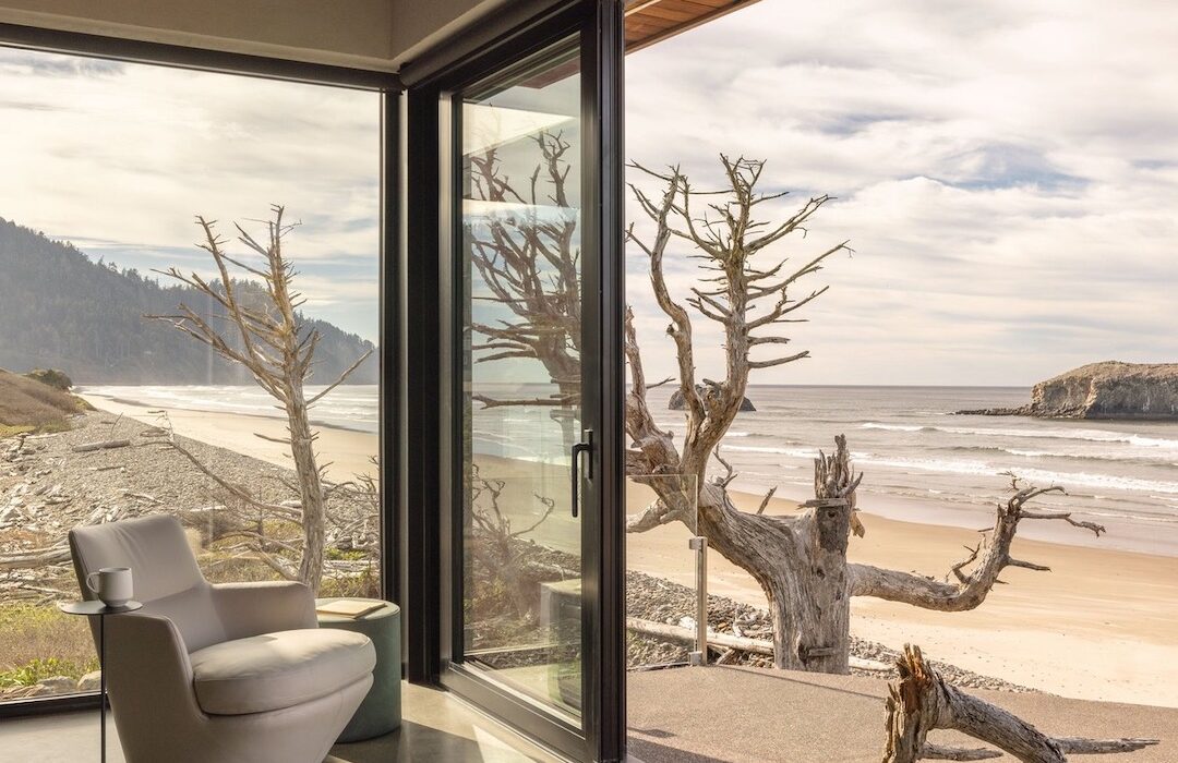 When architect Andrew Montgomery first pulled up to his clients’ house in Arch Cape, Oregon, there were logs in the driveway, courtesy of the sizable swells that come with the coast’s king tides. At just 28 feet above sea level and as close as you can get to the water without being on the beach, Montgomery could tell the home had enviable views. “I do mainly coastal homes, and this is one of the most spectacular sites,” he says. The only problem? The house could still be encroached by larger waves.